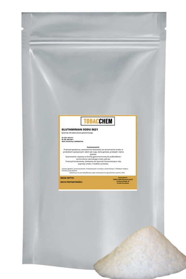 Glutaminian sodu (E621), znany jako MSG (Monosodium Glutamate), to popularny wzmacniacz smaku stosowany w przemyśle spożywczym i gastronomii. Ma postać białego, krystalicznego proszku, jest bezzapachowy i łatwo rozpuszcza się w wodzie.