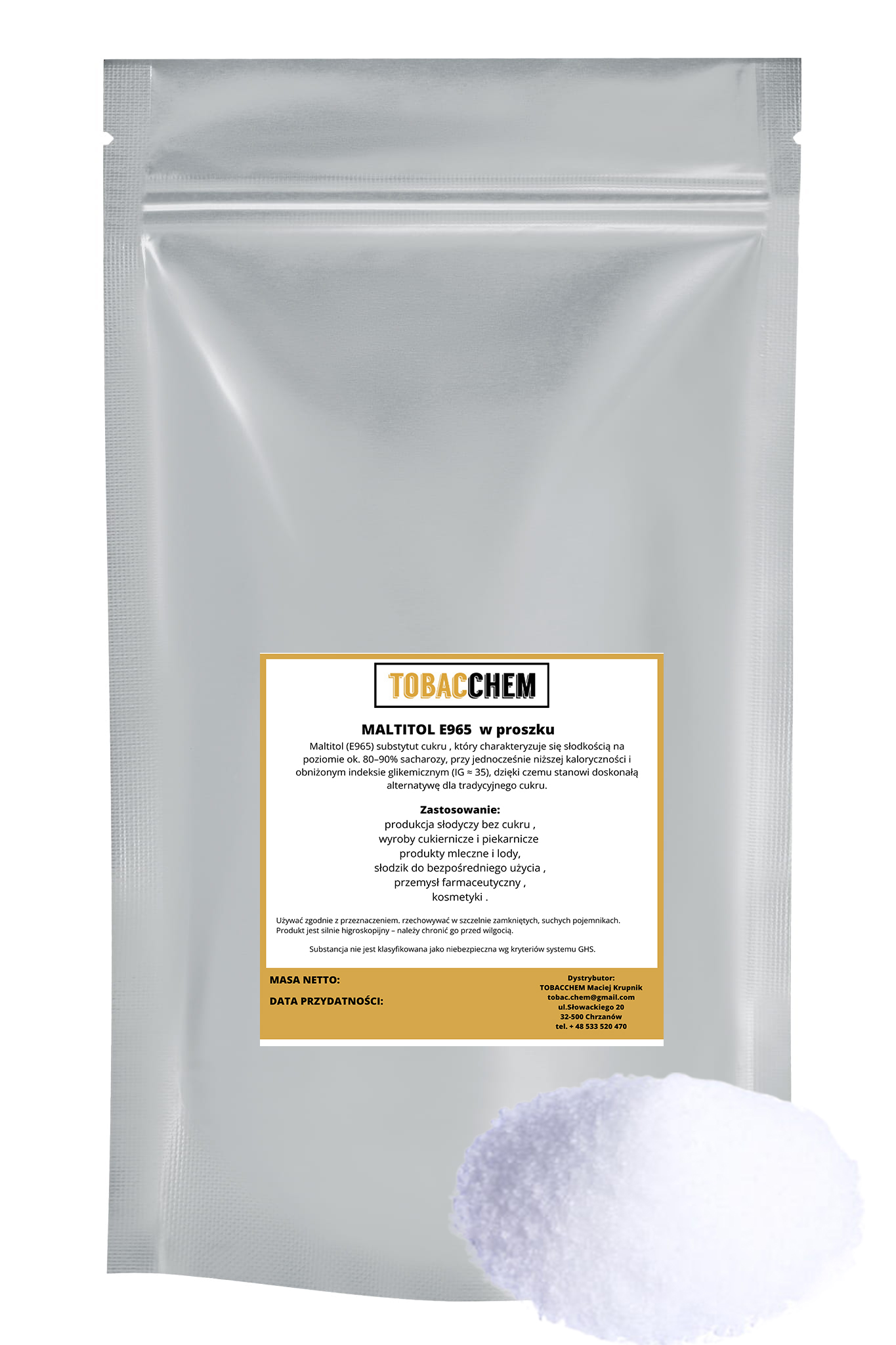 Maltitol (E965) to wysokiej jakości substytut cukru z grupy polioli, otrzymywany z naturalnych surowców (m.in. skrobi kukurydzianej). Charakteryzuje się słodkością na poziomie 80–90% sacharozy, przy jednocześnie niższej kaloryczności i obniżonym indeksie glikemicznym (IG ≈ 35).